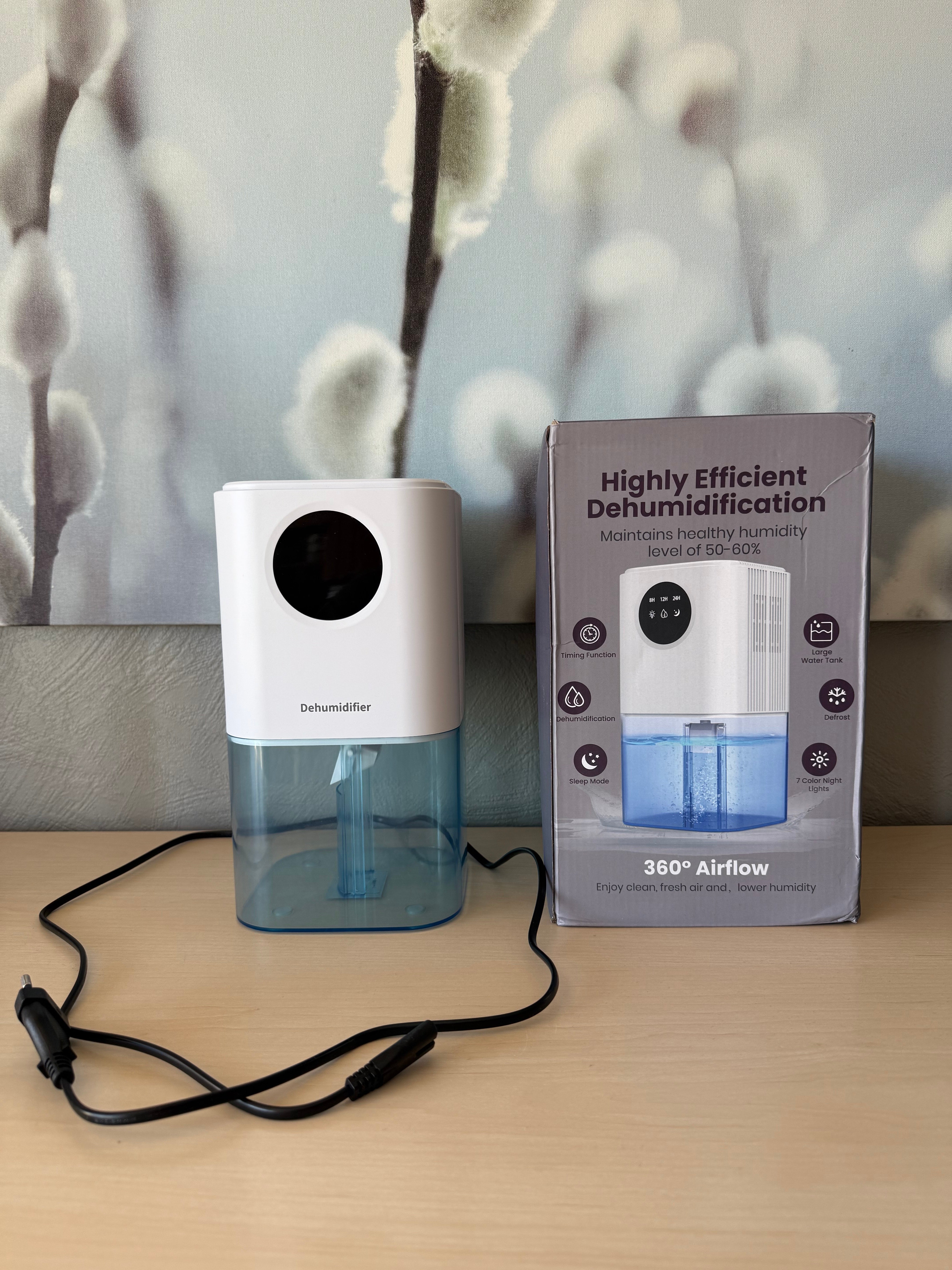 Enheten trekker ut opptil 350 ml fuktighet per døgn og passer ideelt for rom på 10–20 m². Den automatiske avstengningen slår av enheten når vanntanken på 1,7 liter er full, noe som gjør den trygg og enkel å bruke.